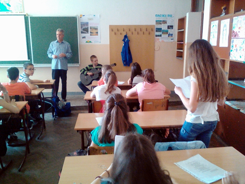 Učenik Jakša Roganović je zvucima gitare pratio govorenje poetskih tekstova.
