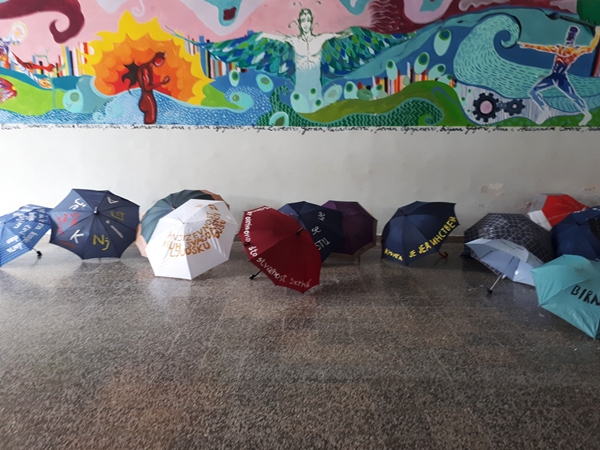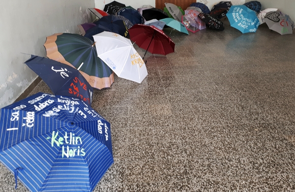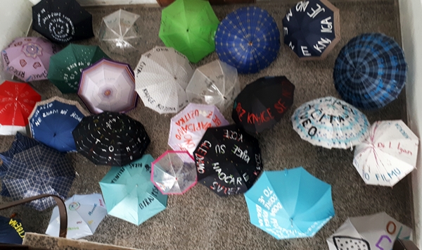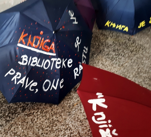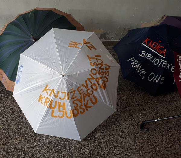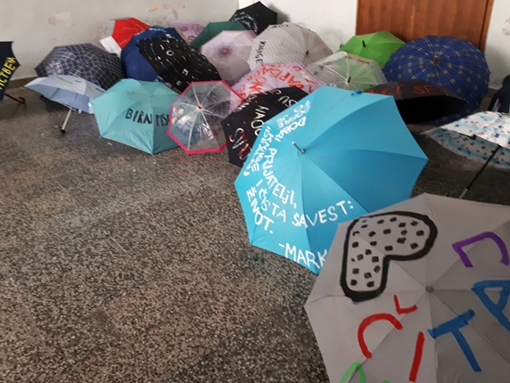 Iz tog razloga, literarno-dramska sekcija je u utorak, 23.04.2019. godine priredila izložbu čuvenih misli o knjizi, izloženih na neobičan način, na starim kišobranima u holu Škole, uz koju je upriličila poetski recital.