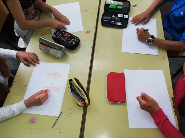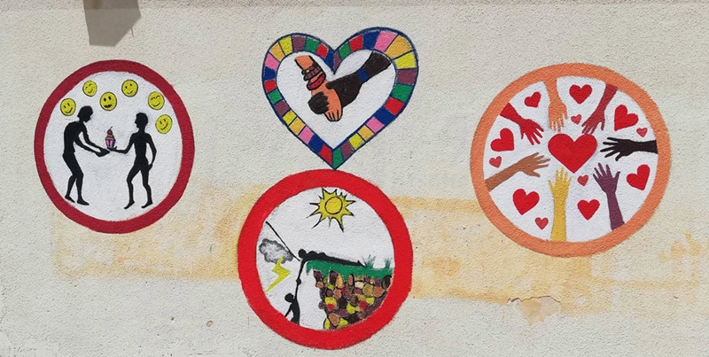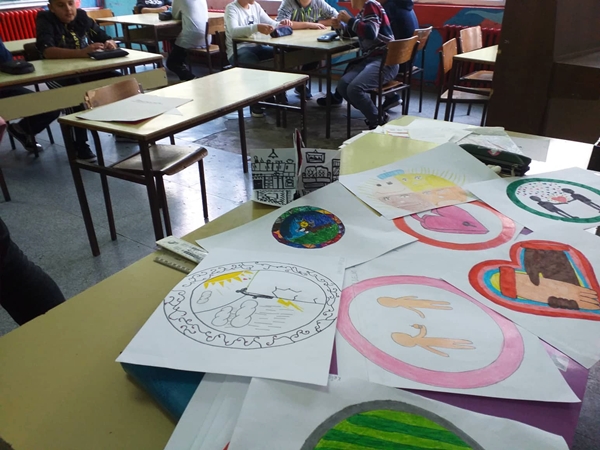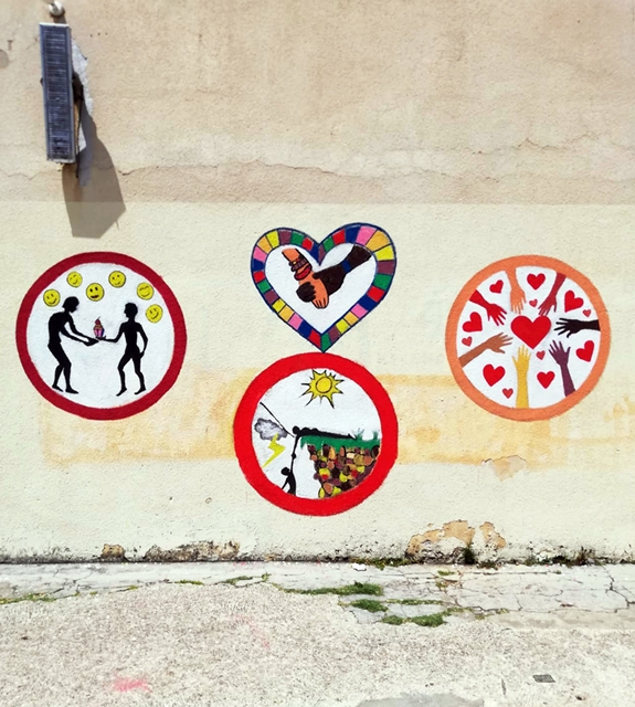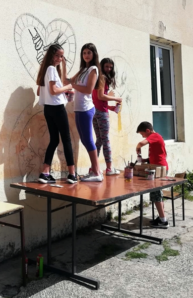 Na ovim časovima, grupnim radom, učenici su prikazali simbole za nekoliko tema koje su maštovito nacrtali. Od pristiglih grupnih radova odabrana su četiri simbola koji su oslikani na spoljašnjem zidu Škole i tom prilikom su poslate sljedeće poruke : “Pomoć prijatelju”, “Zaustavimo svađu”, “Dijelimo međusobno” i “Zajedno različiti”. Murale su oslikavali: Katarina Krivokapić, Lola Novaković, Luka Nikolić, Sara Popivoda, Kristina Vulović i Milena Kuč,svi učenici odijeljenja VI 2.