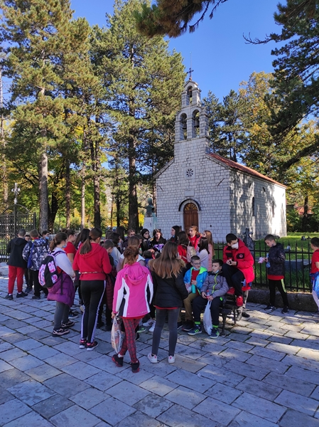 Učenici sedmih razreda naše Škole, u pratnji odjeljenjskih starješina Slađane Vujović i Tanje Rotković, u periodu od 27. do 29. oktobra 2021. godine, boravili su na Cetinju u okviru projekta “Čas istorije u Prijestonici: Cetinje – jedna priča”. Cilj ovog projekta je razvijanje pozitivnog odnosa kod djece prema sopstvenoj državi i njegovanje demokratskih i građanskih vrijednosti Crne Gore, kroz uvezivanje kulturno-istorijskog bogatstva prijestonog Cetinja u obrazovni sistem. Program se realizuje posjetom kulturno-istorijskim znamenitostima i nacionalnim parkovima, sa osmišljenim predavanjima i radionicama prikladnim uzrastu učenika, uz zabavno-rekreativni segment (kviz znanja).