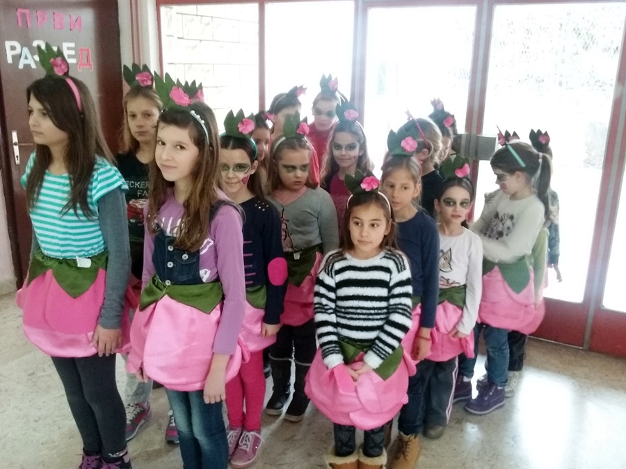 Pripreme učenika naše Škole, PU Baošići-Đenovići za defile cvjetnih maski u okviru manifestacije “Dječija cvjetna povorka” u sklopu 47. Praznika mimoze – Herceg Novi, glavni gradski Trg, 17.02.2016. godine.