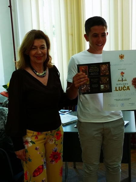2. Vasilije Popović IX 2 – za osvojeno drugo mjesto iz hemije na Državnom takmičenju u znanju