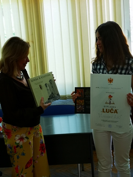 NVO Udruženje žena „Riza“ iz Bijele, prigodnim knjigama nagradilo je dobitnike diploma “LUČA”, kao i najboljeg učenika Dječijeg doma “Mladost” iz Bijele – Saru Pajević.