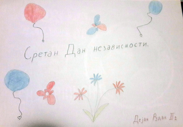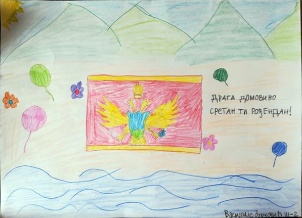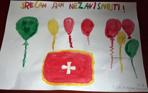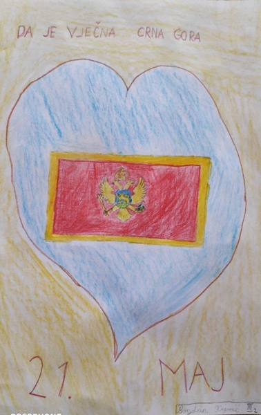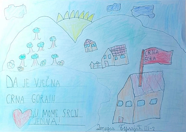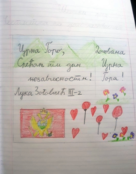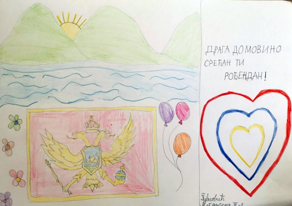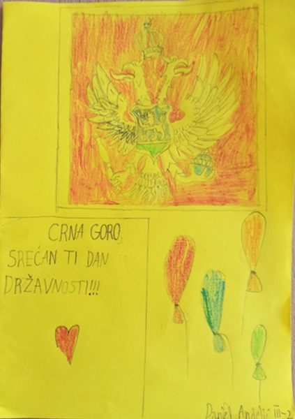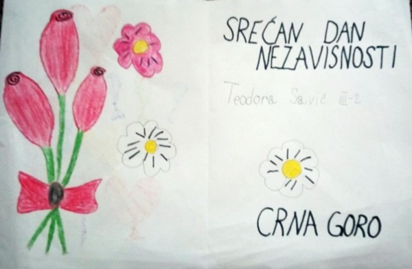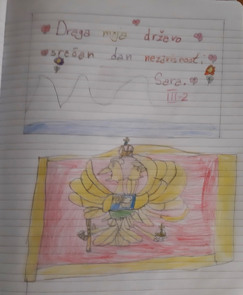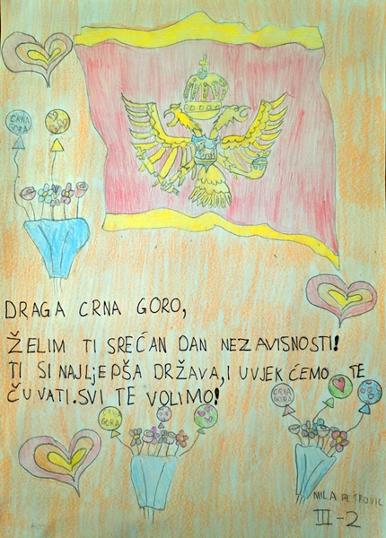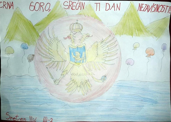Učenici III-2 na online času likovne kulture, u korelaciji sa Crnogorskim-srpskim, bosanskim, hrvatskim jezikom i književnosti, osmislili su čestitku svojoj Domovini za njen Dan nezavisnosti.