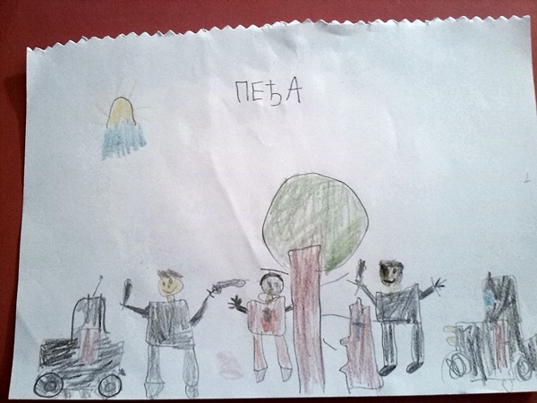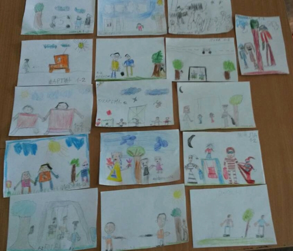 Učenici I razredi crtali cu na temu „Kako ignorisati nepoznate osobe i obavijestiti starije o opasnim situacijama“.