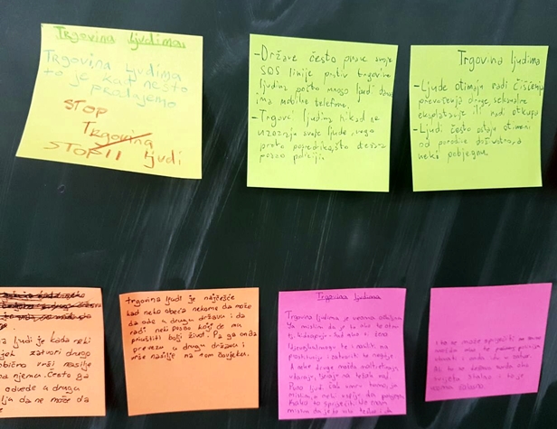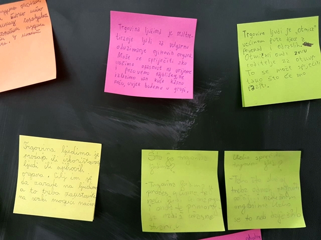 Svi učenici od II do IX razreda, na prvom školskom času, upoznati su sa vidovima i oblicima trgovine ljudima. Vođena je diskusija, učenicima su postavljana sljedeća pitanja: