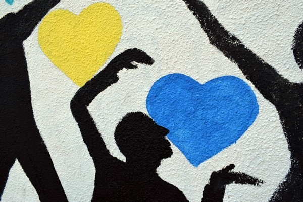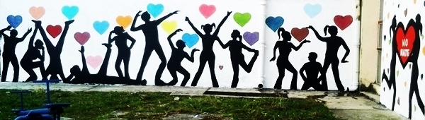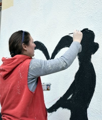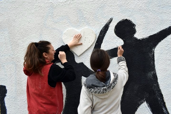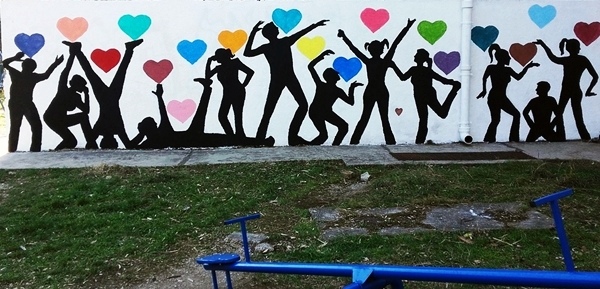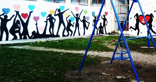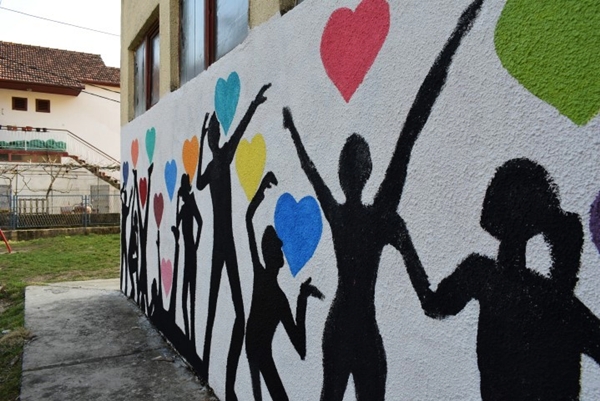 Na muralu su nacrtani obrisi djece koja se igraju šarenim srcima, kao poruka mira i ljubavi, pomirenja i sreće. Na drugoj strani zida iscrtan je mural “Hate free”, kao dopuna našoj borbi protiv govora mržnje.