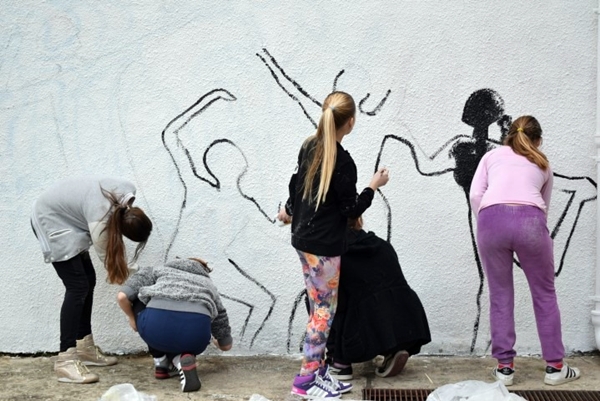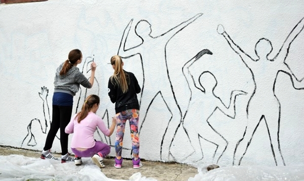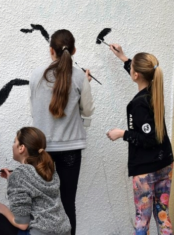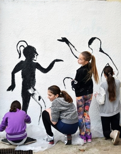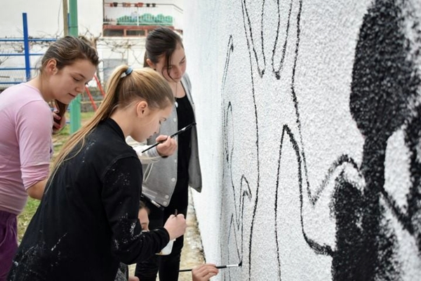 Mural je nastao kao inicijativa učenika Likovne sekcije koji pohađaju radionice forum teatra, koje se realizuju u Školi, kroz projekat “Hate free cities”.