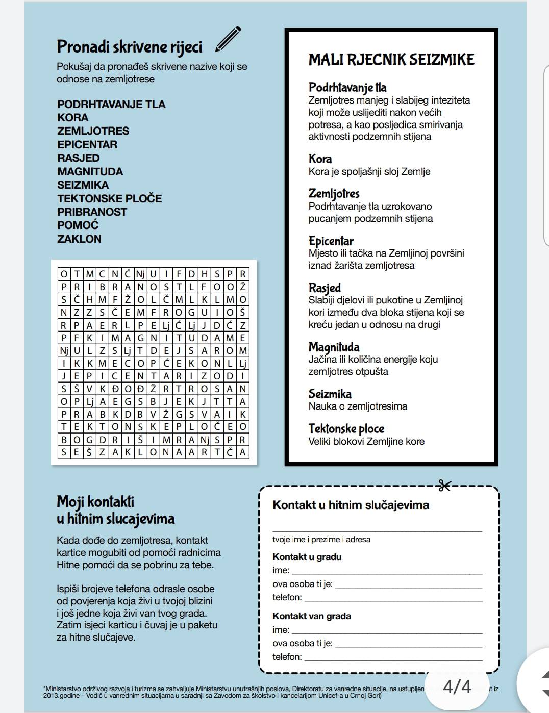 Vodič za ponašanje u slučaju zemljotresa.