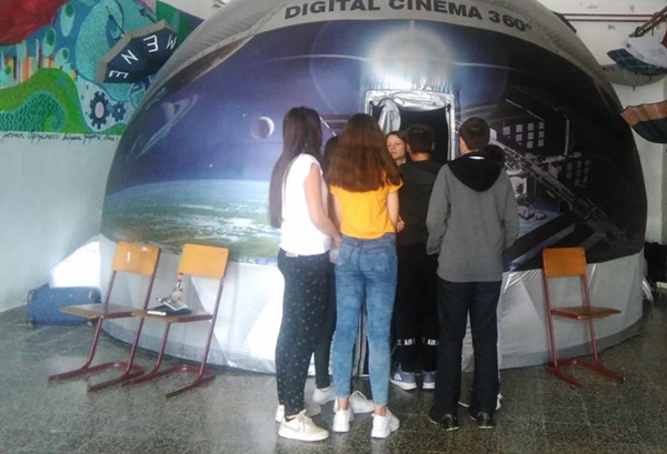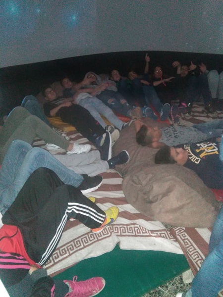 U improvizovanoj kupoli u holu Škole, učenici III 1 i III 2 prvi su imali priliku da vide nešto što je jako neobično za njih.Kada su ušli u sfernu kupolu, početak filma sačekali su u ležećem položaju. Instruktorke, Anja i Katarina, jako ljubazne i nasmijane, kada su ih smjestile, počele su sa prikazivanjem filma. Djeca su doživjela čudan i neobičan „put u svemir”. Sa uživanjem, sve su radoznalo pratili i bili su veoma uzbuđeni zbog tog „putovanja”.