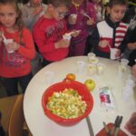 Pričajući o važnosti vitamina u ishraničovjeka, a posebno djece, došli smo na ideju da na času prirode i društva napravimo voćnu salatu.