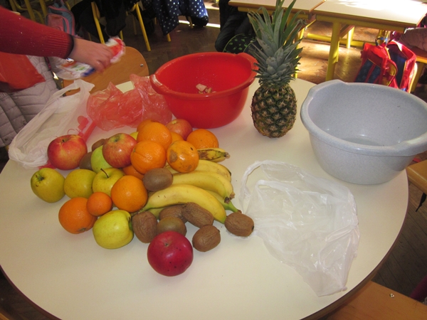 Pričajući o važnosti vitamina u ishraničovjeka, a posebno djece, došli smo na ideju da na času prirode i društva napravimo voćnu salatu.