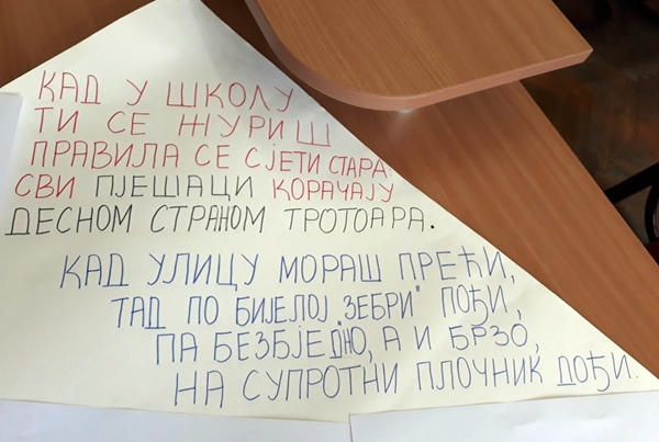 Učenici PU Kamenari prosetali su kroz mjesto, poštujući pravila saobraćaja. Prije šetnje, učenici su kroz zanimljive stihove ponovili pravila ponasanja na ulici.