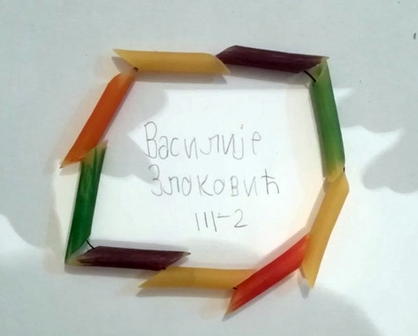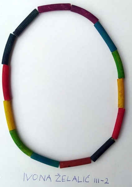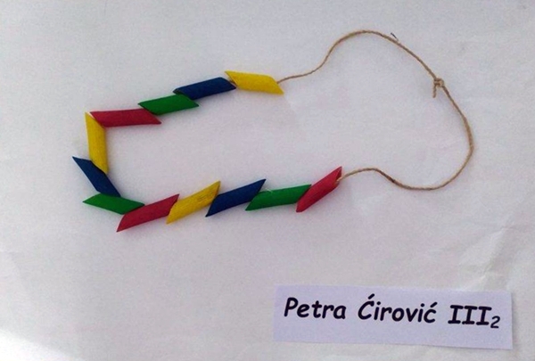 Na online časovima likovne kulture učenici III-2, u izradi svojih umjetničkih radova koristili su nizanje – ponavljanje elemenata, a za to su im poslužili makaroni iz mamine kuhinje (Preduzetništvo).