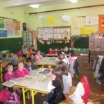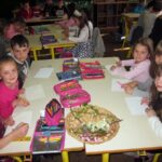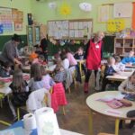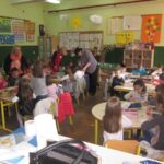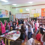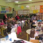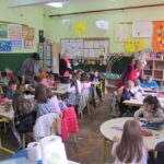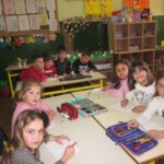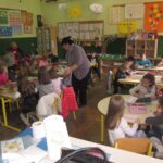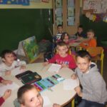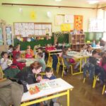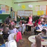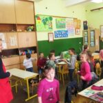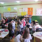 Kroz razgovor došli smo i do zaključka da su nam maleni gosti došli kao vjesnici proljeća. U učionici su imali uređen kutak sa prvim proljećnim cvjetovima i drvo čija je krošnja procvjetala, pa smo to iskoristili da sem riječima, predstavimo i crtežom, uz pjevušenje pjesama sa CD „Visibaba“ i „Proljeće“. Za kraj, djeca su plesala uz muziku, izražavajući i pokretima svoja osjećanja.