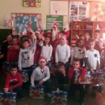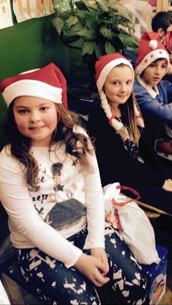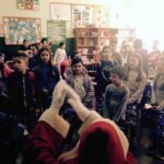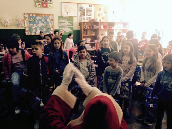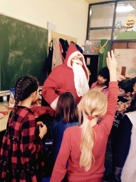 Djeca, ne znajući za Djeda Mraza i poklone bila su jako iznenađena kada se pojavio na vratima učionice. Družeći se sa njim, pjevali su mu i recitovali. On ih je nagradio poklon paketićima.