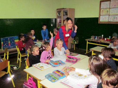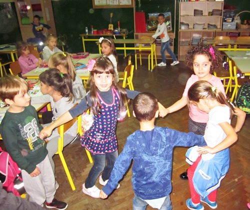 Poslije prvog časa, 10.10.2016. godine, učenike I1 razreda posjetili su dragi gosti. To su bili predškolci sa svojim vaspitačicama, Vukicom Pujić i Tamarom Nikčević, iz vrtica „Pčelica“ iz Bijele.
