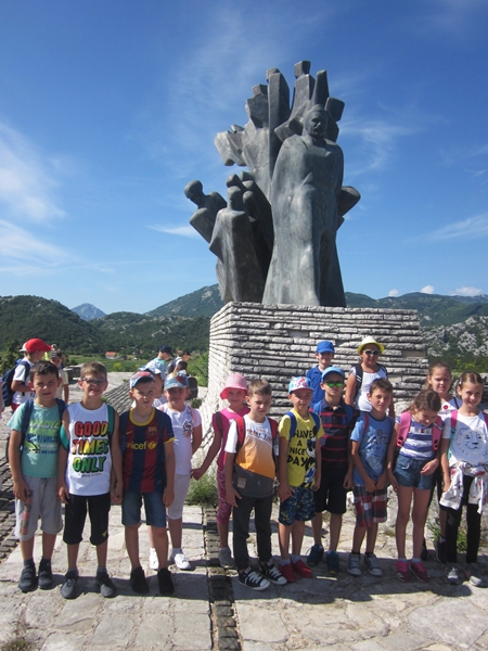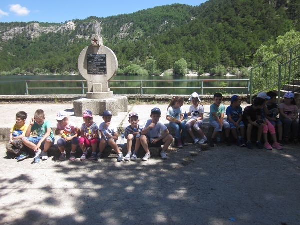 Na putu ka odredištu čuo se veseli žagor djece koja su, sa nestrpljenjem, čekala da izađu iz autobusa. Po dolasku, uputili su se ka spomeniku, odakle su se divili pogledu na cijelo Grahovo i okolinu.Nakon toka, učenici su posjetili OŠ „Pavle Kovačević“, gdje su srdačno dočekani i ugošćeni od strane direktora i osoblja škole. Djeca su se na velikom odmoru družila i igrala sa svojim vršnjacima, a zatim su krenuli prema jezeru. U prolazu su posmatrali prirodu i pjevali pjesme, naučene na časovima muzičke kulture. Bili su iznenađeni ljepotom jezera. Uživali su posmatrajući, uz fotografisanje.