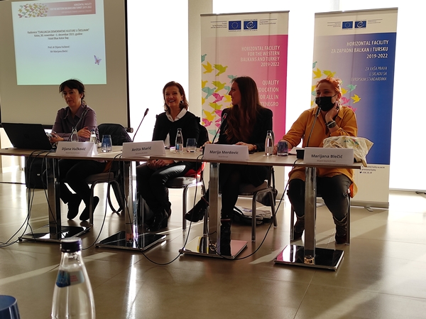 Programska kancelarija Savjeta Evrope u Podgorici, uputila je poziv našoj školi da učestvuje u radionicama, organizovanim za 40 pilot škola, koje su se održale 30. novembra i 1. decembra 2021. godine u Kotoru, pod nazivom „Evaluacija demokratske kulture u školama“. Našu školu predstavljala je Tanja Rotković, profesorica italijanskog jezika i književnosti i koordinatorka projekta „Kvalitetno obrazovanje za sve“.