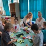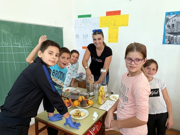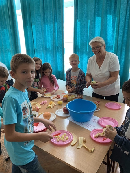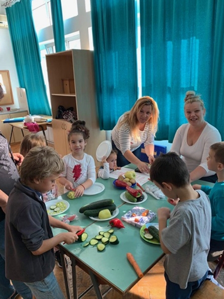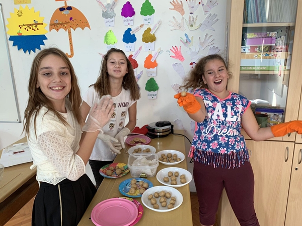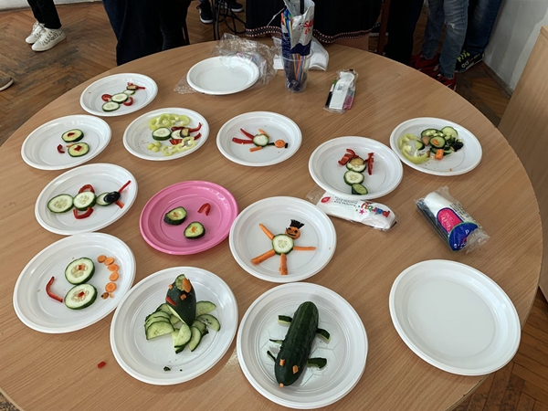 U okviru organizovanih radionica, učenici su, uz pomoć roditelja i baka, pravili zdrave kolače, voćnu salatu, sokove, kao i figure od sjeckanog povrća.
