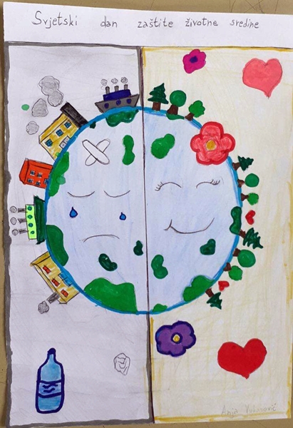 5. juna 2021. godine u odljeljenju V-1 obilježen je Svjetski dan zaštite životne sredine. Učenici su čitali tekstove na datu temu, a zatim davali predloge kako sačuvati životnu sredinu, jer smo i mi dio nje. Uz pjevušenje prigodnih pjesamica, djeca su na slikovit način predstavila kako se pozitivno treba odnositi prema prirodi i životnoj sredini uopšte.