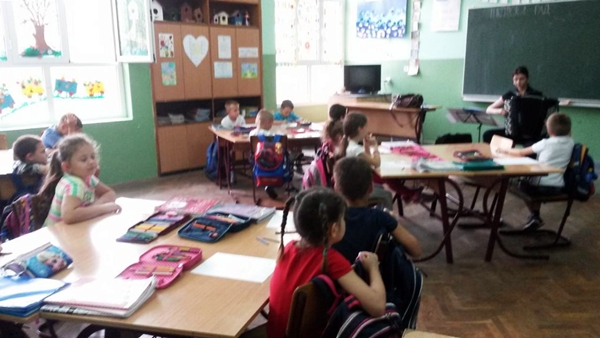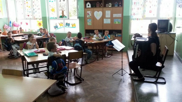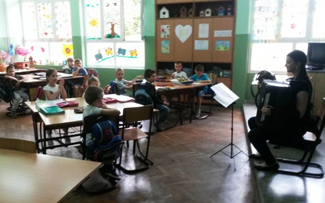 Učenici su imali priliku da upoznaju instrument koji proizvodi čudesno lijepe zvukove i ima snagu kao cijeli orkestar. Profesorica je na harmonici svirala popularne, kao i klasične pjesme. Dok su uživali u bogatom zvuku i tananim prelivima tonova koji su izvirali iz harmonike, učenici su imali zadatak da obojaju Štrumpfa koji svira na harmonici. Posebno im se dopalo kada je profesorica svirala valcer, a nakon završenog časa, mnogi od njih su poželjeli da i sami nauče da sviraju na tom divnom instrumentu.