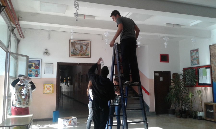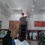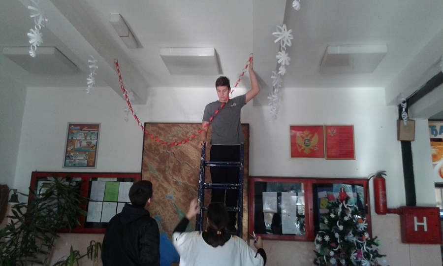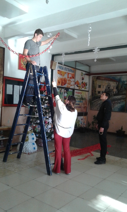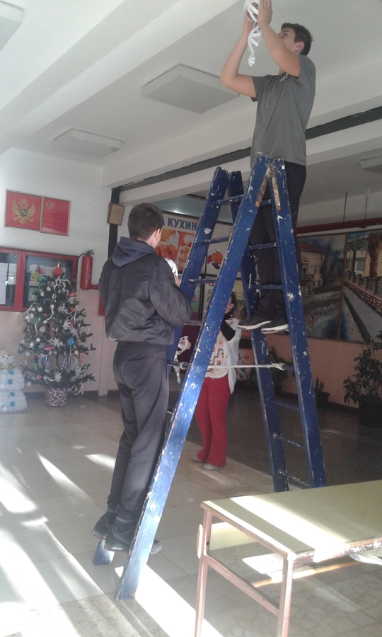 U susret Novogodišnjim praznicima, članovi Likovne sekcije zajedno sa nastavnicom Aleksandrom Ćorović ukrašavali su prostorije Škole i okitili novogodišnju jelku.
