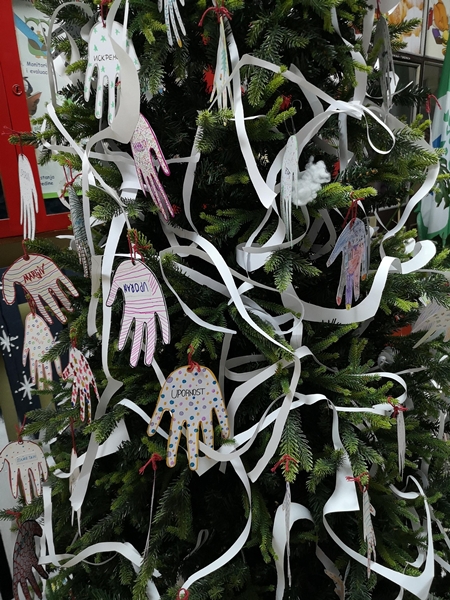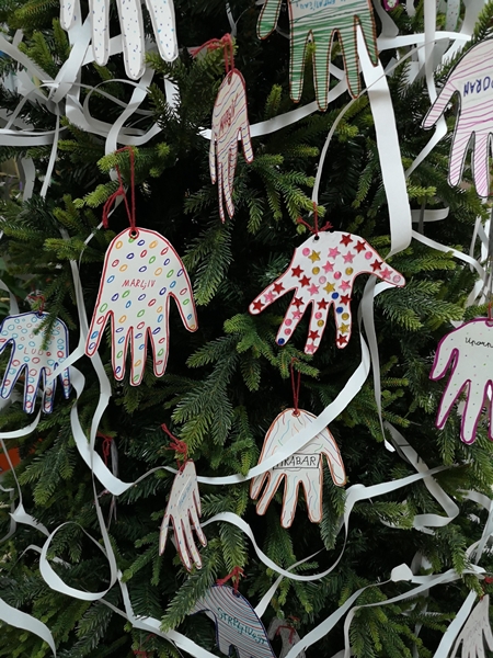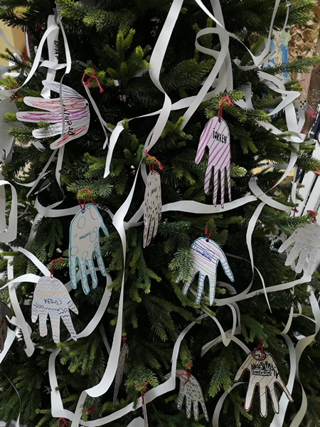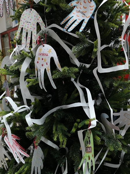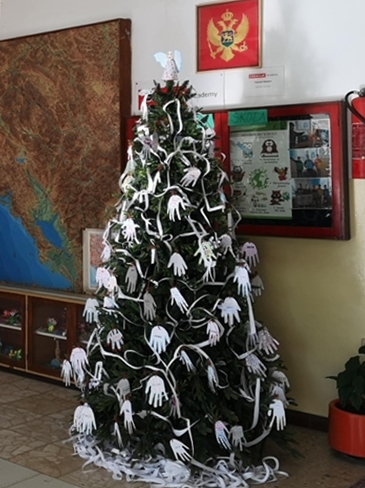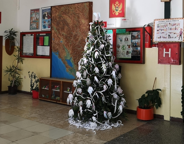 Istim povodom, članovi Likovne sekcije okitili su novogodišnju jelku u holu škole.