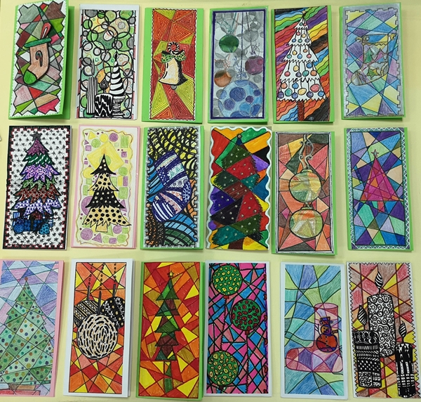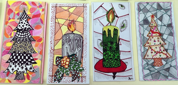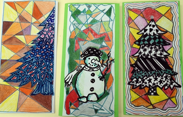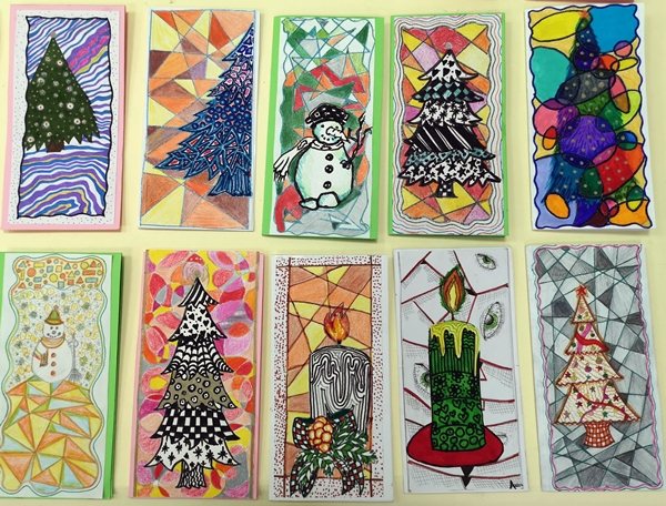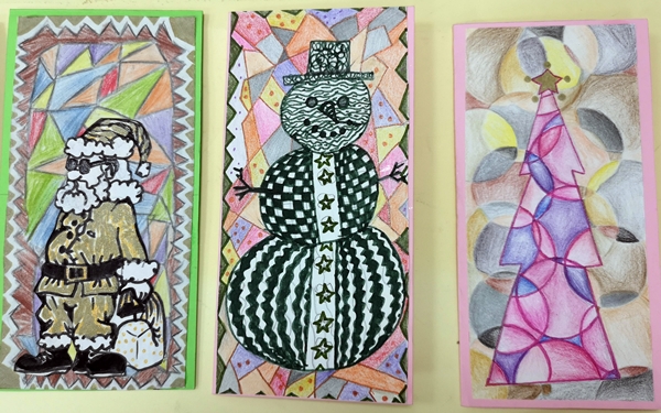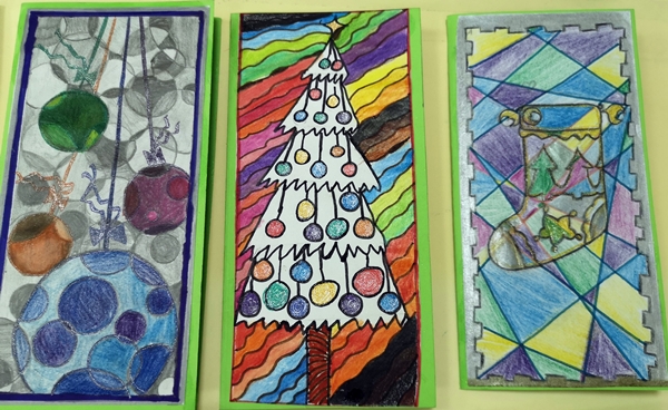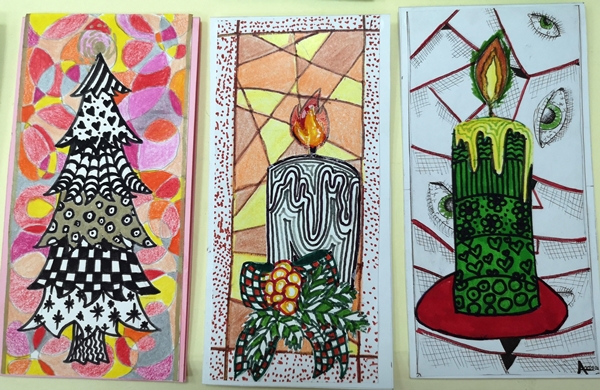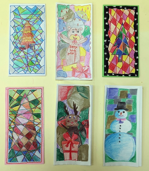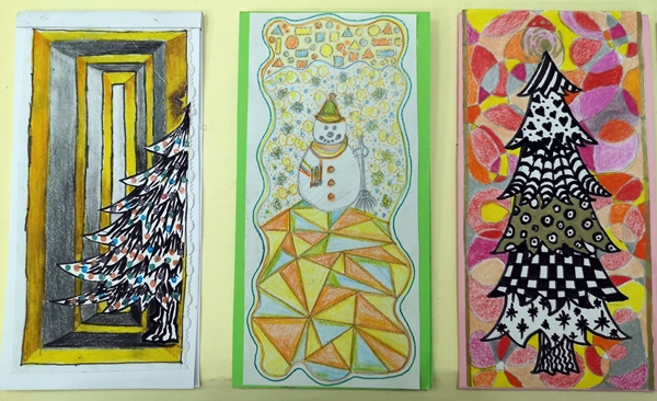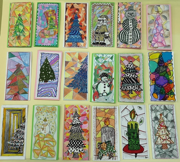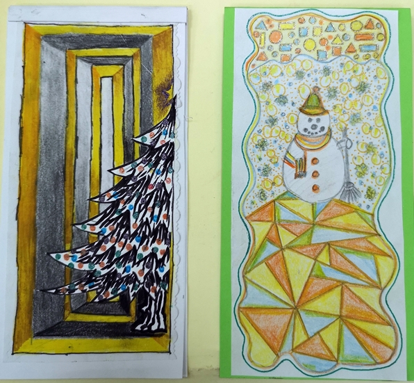 U susret Novogodišnjim praznicima, u okviru izbornog predmeta Likovna radionica, učenici VII razreda osmislili su i izradili novogodišnje čestitke.