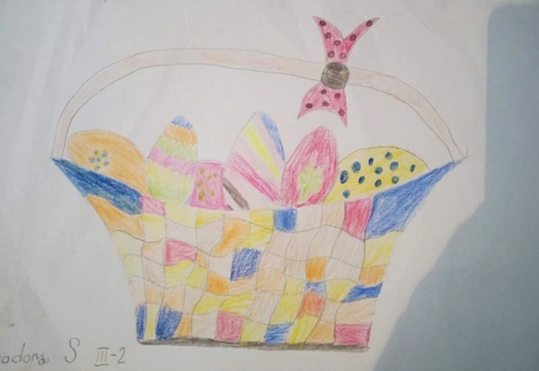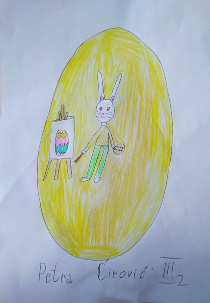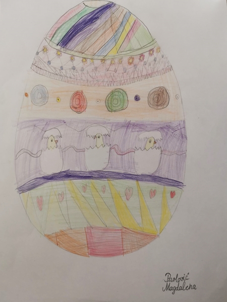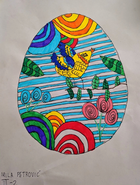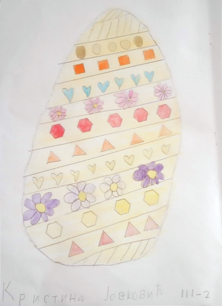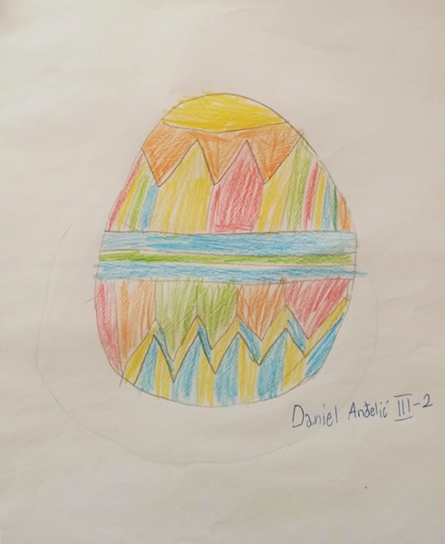 Likovnim radovima na temu ,,Uskršnja jaja”, učenici III 2 dočarali su kako bi oni ukrasili jaja, služeći se raznovrsnim linijama i nizanjem oblika.
