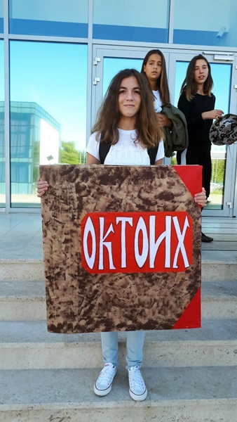 Učenici su na sajamskom prostoru nastupili u kategoriji pojedinačnih maski: Rašković Tara – Štamparija, Ilić Vladana – knjiga Oktoih, dok su ostali učenici u vidu pergamenata i staroslovenskog prvog pisma šetali Sajmištem, gdje ih je posmatrao i ocjenjivao žiri sastavljen od poznatih ličnosti iz svijeta kulture u Crnoj Gori: Maša Vlaović, istoričarka umjetnosti – predsjednica, Dijana Dragojević, glumica – član, Sejfo Seferović, glumac – član.