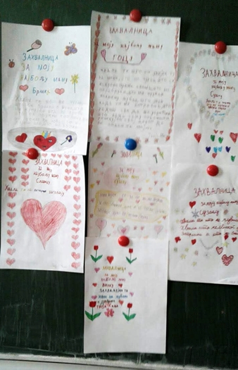 Povodom Osmog marta, učionice u PU Baošići-Đenovići bile su pune poruka zahvalnih učenika, koji su, podsticani od strane nastavnika na razvoj ove vještine da dožive i iskažu zahvalnost, crtali zahvalnice za mame, bake, tetke, ujne (učenici I ciklusa) i pisali pisma zahvalnosti (II ciklus), uz iskazivanje razloga zahvalnosti i izražavanje misli koje prate zahvalnost.